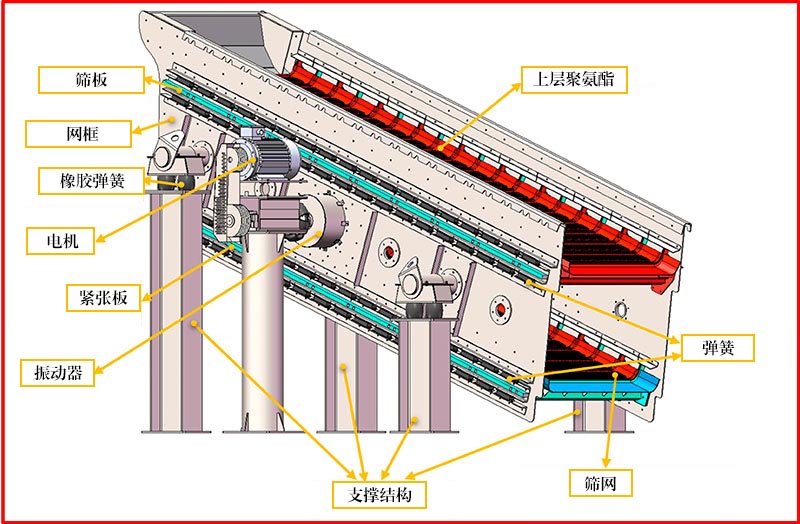 4、關(guān)鍵部位設(shè)計有耐磨橡膠保護層,延長篩網(wǎng)及篩板的使用壽命。