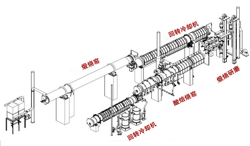 整個加熱過程完成后,將物料送入冷卻窯進行冷卻,冷卻后的物料送出窯外。 反應氣體從進料端加入,待物料充分混合反應后從出料端排出。 在向前運動過程中,物料與反應氣體充分反應。