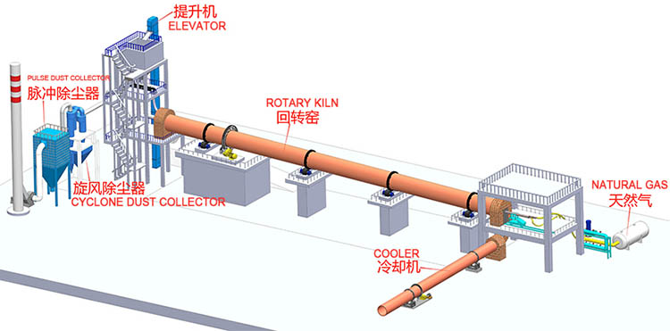 錳礦回轉(zhuǎn)窯整體結(jié)構(gòu)緊湊,占地面積小,操作維護方便。